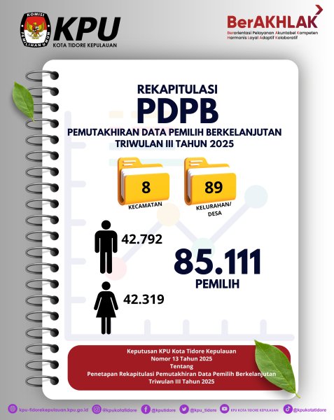 Rekapitulasi PDPB Pemutakhiran Data Pemilih Berkelanjutan Tingkat KPU Kota Tidore Kepulauan Triwulan III Tahun 2025