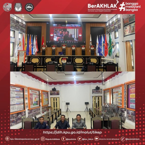 Turut hadir secara daring Ketua KPU Kota Tidore Kepulauan Randi Ridwan, Ketua Divisi Pengawasan dan Hukum Abdulharis Do’a, serta jajaran sekretariat KPU Kota Tidore Kepulauan.