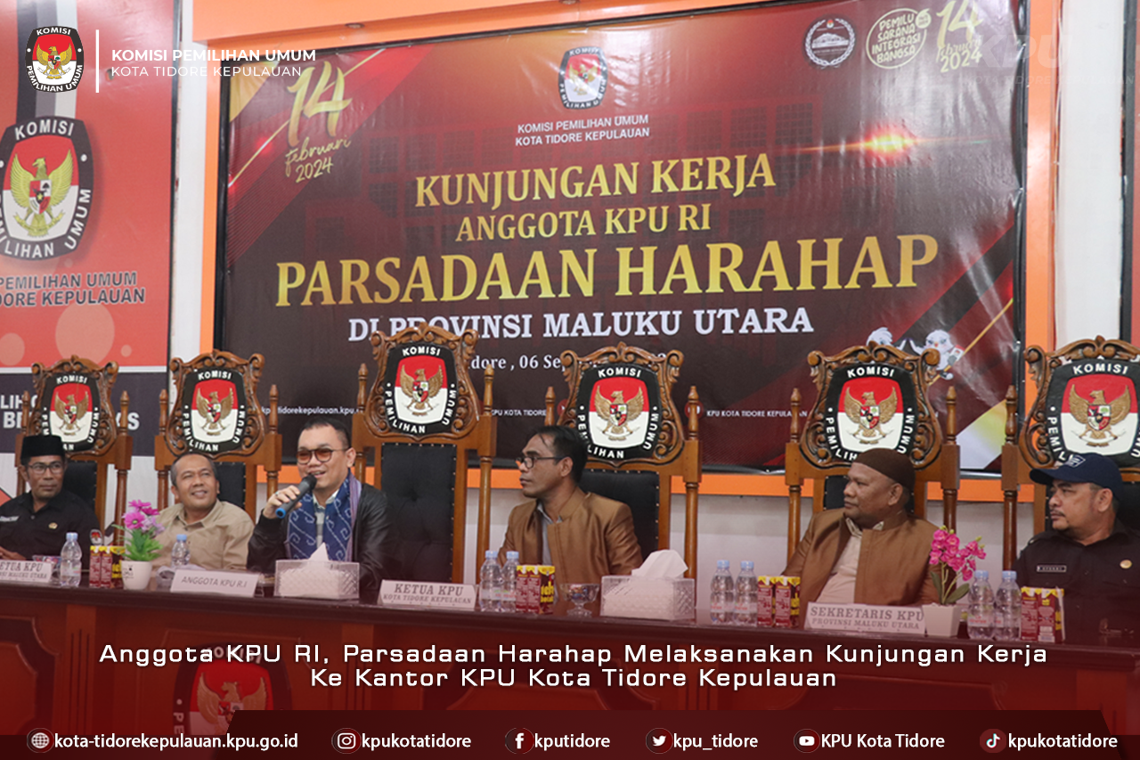 #TemanPemilih, Anggota KPU RI, Parsadaan Harahap melaksanakan kunjungan kerja ke kantor KPU Kota Tidore Kepulauan, Maluku Utara, Rabu (6/9/2023).