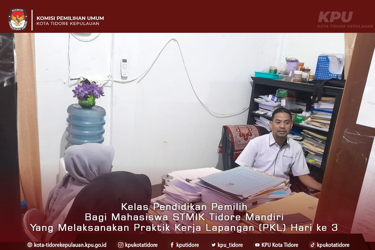 Kelas Pendidikan Pemilih Bagi Mahasiswa STMIK Tidore Mandiri yang melaksanakan Praktik Kerja Lapangan (PKL) Hari ke 3