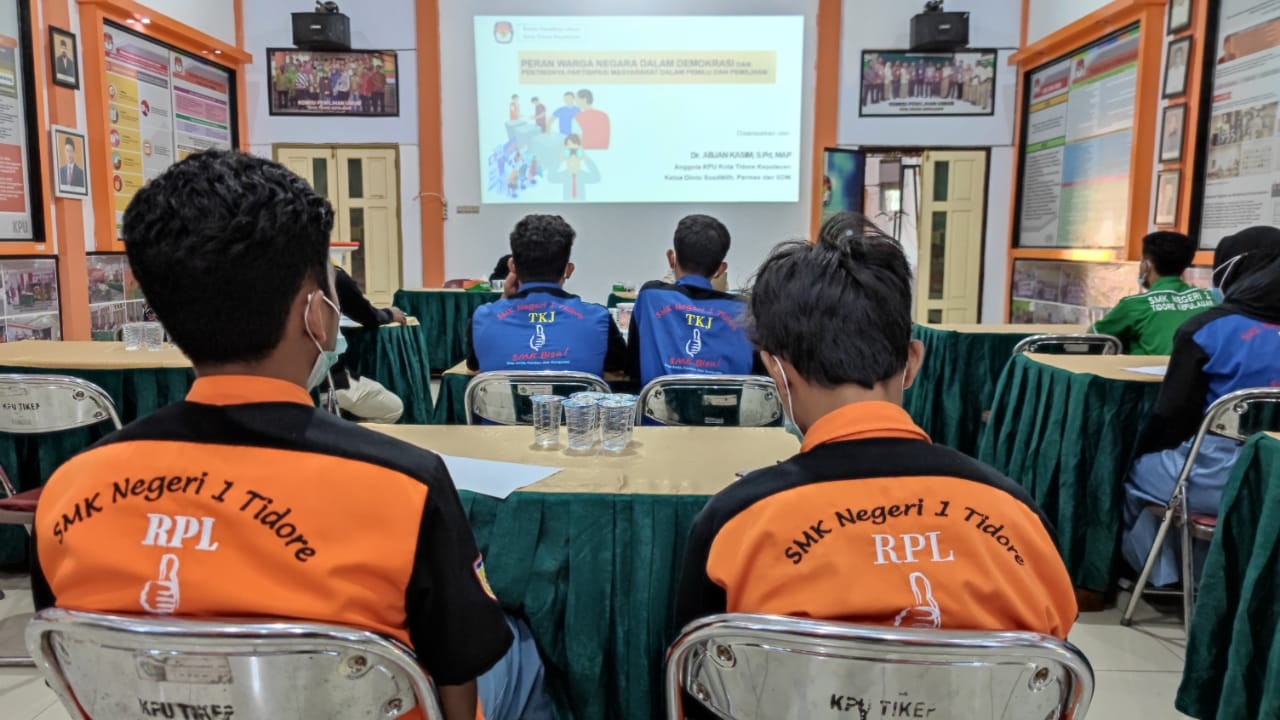 Rabu (16/2/2022) bertempat di aula kantor, KPU Kota Tidore Kepulauan menggelar kegiatan lanjutan Kelas Pendidikan Pemilih dan Peningkatan Kompetensi Sumber Daya Manusia (SDM) Sekretariat . Pelaksanaan kegiatan hari ini merupakan lanjutan setelah pembukaan kegiatan pada tanggal 9 Pebruari 2022. Ketua Divisi Sosdiklih Parmas dan SDM, Abjan Kasim sebagai narasumber utama membawakan materi Peran Warga Negara Dalam Negara Demokrasi Dan Pentingnya Partisipasi Masyarakat Dalam Pemilu dan Pemilihan, sementara narasumber ke dua Kepala Subbagian Keuangan Umum dan Logistik, Samsul Bakri Mahifa memaparkan terkait tugas pokok dan fungsi subbagian keuangan, umum dan logistik. Kegiatan hari ini diikuti oleh 9 siswa-siswi SMK yang melakukan PKL/magang di kantor KPU Kota Tidore Kepulauan dan staf sekretariat. Kegiatan ditutup pada pukul 12.30 WIT.