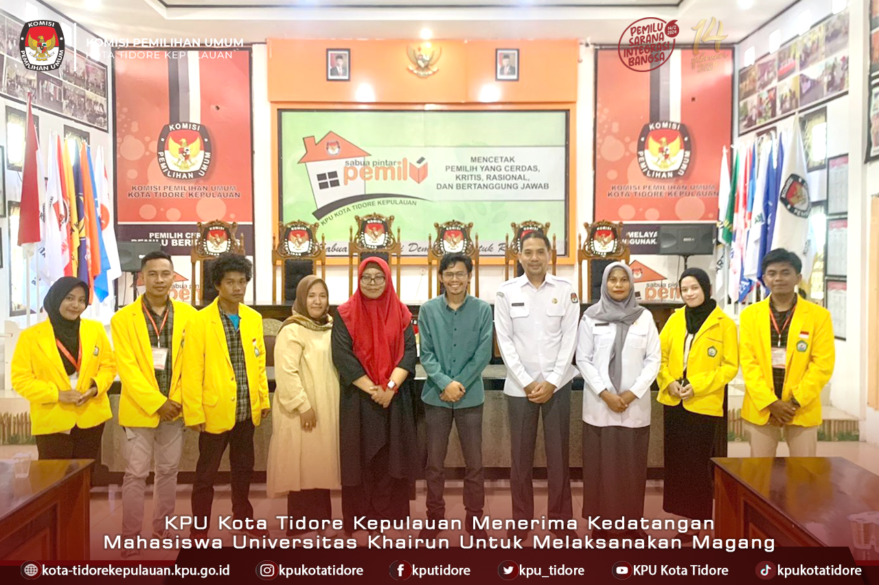 #Temanpemilih, Senin (25/9/2023) KPU Kota Tidore Kepulauan (Tikep) menerima kedatangan 5 Mahasiswa dari Universitas Khairun untuk melaksanakan magang di Kantor KPU Tikep.