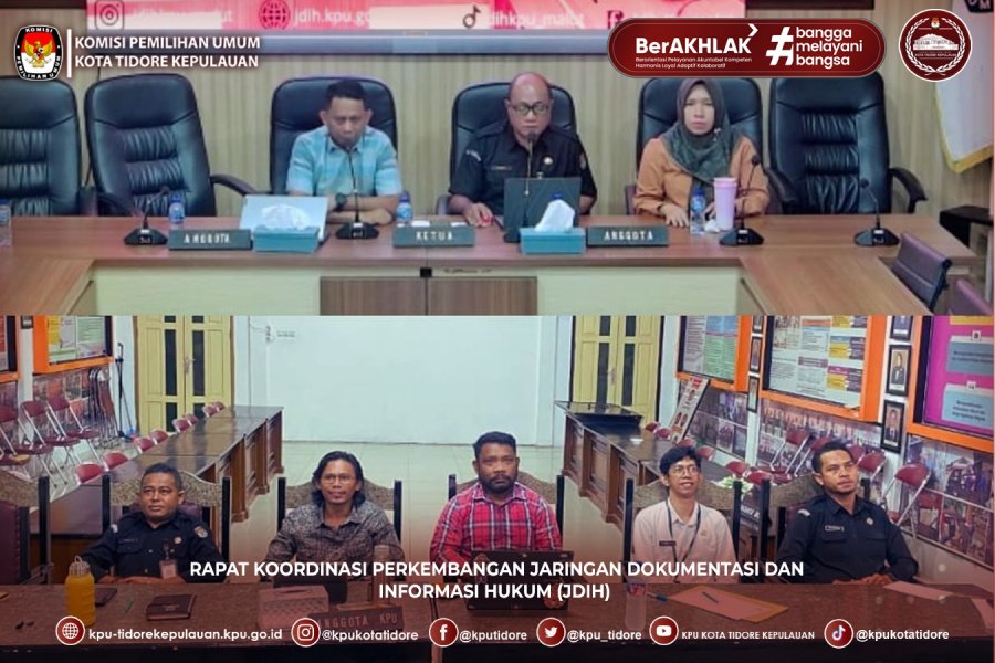 Tidore, 13 Agustus 2025 — Komisi Pemilihan Umum (KPU) Kota Tidore Kepulauan mengikuti Rapat Koordinasi Pengelolaan laman JDIH KPU yang dilaksanakan KPU Provinsi Maluku Utara secara daring.