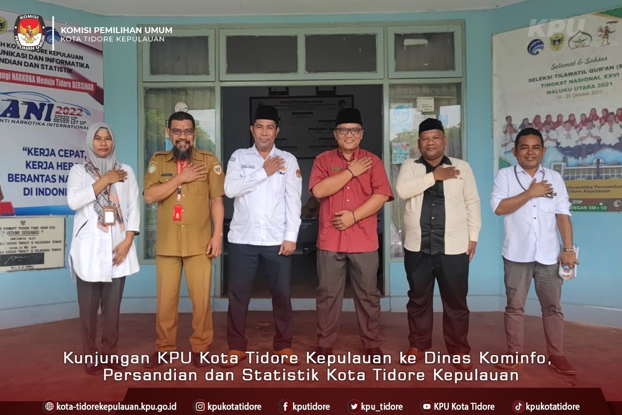 #TemanPemilih, KPU Kota Tidore Kepulauan melakukan kunjungan koordinasi ke Dinas Komunikasi Informatika, Persandian dan Statistik Kota Tidore Kepulauan, Senin (11/7/2022). Dalam kunjungan ini Anggota KPU Kota Tidore Kepulauan Abjan Kasim didampingi Sekretaris Akmal Daud, Kasubbag Teknis Penyelenggaraan Asman Hi. Muhammad dan Kasubbag Hukum dan SDM Alwia M. Saleh serta staf Rizal M. Zainal, dan diterima langsung Sekretaris Dinas Budi Mustafa dan Kepala Bidang Persandian Anas Basinu. Dalam kegiatan ini KPU Kota Tidore Kepulauan berkoordinasi terkait informasi terbaru area blank spot dan ketersedian jaringan internet di Kota Tidore Kepulauan dalam menghadapi tahapan Pemilu 2024 serta aktivitas Bakohumas KPU Kota Tidore Kepulauan.