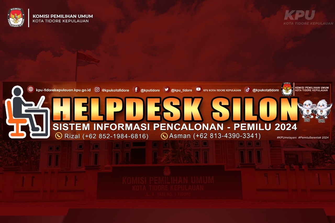 Layanan helpdesk KPU Kota Tidore Kepulauan dibuka dari tanggal 1-13 Mei 2023 mulai pukul 08.00 - 16.00 WIT, sedangkan pada tanggal 14 Mei 2023 mulai pukul 08.00 - 23.59 WIT.