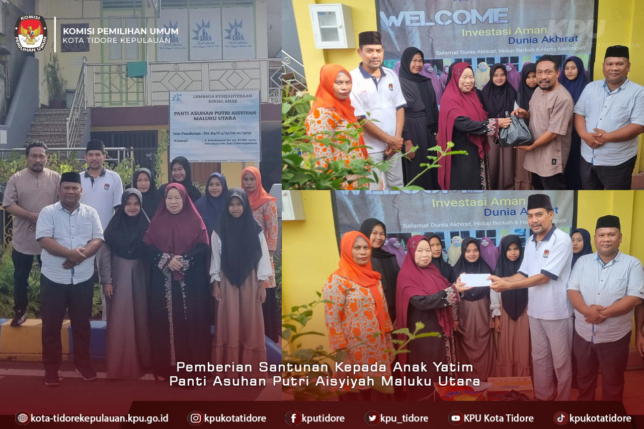 #TemanPemilih, KPU Kota Tidore Kepulauan (Tikep) memberikan santunan kepada anak yatim yang berada di Panti Asuhan Putri Aisyiyah Maluku Utara, Jum'at (28/7/2023).