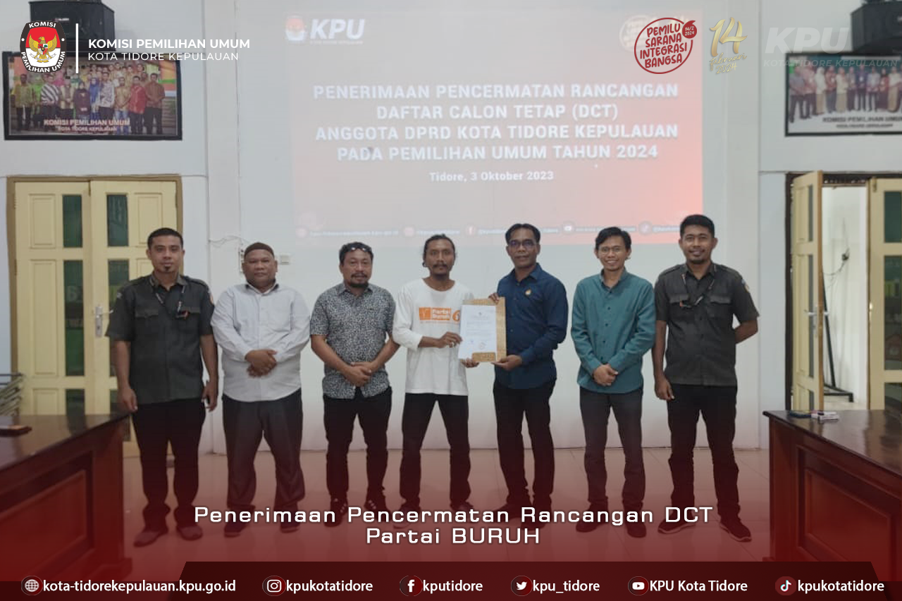 #TemanPemilih, Partai BURUH Kota Tidore Kepulauan mengajukan Pencermatan Rancangan Daftar Calon Tetap (DCT) Anggota DPRD Kota Tidore Kepulauan pada Pemilu Tahun 2024 ke KPU Kota Tidore Kepulauan, Selasa (3/10/2023).