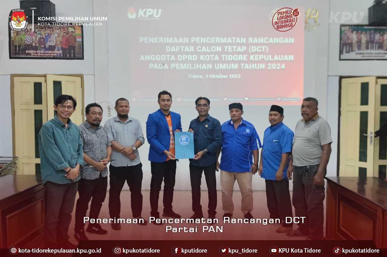#TemanPemilih, Partai PAN Kota Tidore Kepulauan mengajukan Pencermatan Rancangan Daftar Calon Tetap (DCT) Anggota DPRD Kota Tidore Kepulauan pada Pemilu Tahun 2024 ke KPU Kota Tidore Kepulauan, Selasa (3/10/2023).