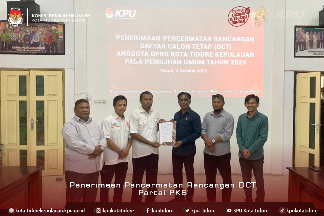 #TemanPemilih, Partai PKS Kota Tidore Kepulauan mengajukan Pencermatan Rancangan Daftar Calon Tetap (DCT) Anggota DPRD Kota Tidore Kepulauan pada Pemilu Tahun 2024 ke KPU Kota Tidore Kepulauan, Selasa (3/10/2023).