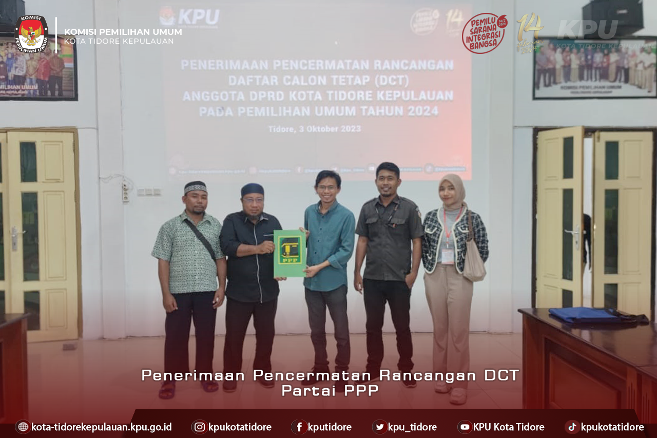 #TemanPemilih, Partai PPP Kota Tidore Kepulauan mengajukan Pencermatan Rancangan Daftar Calon Tetap (DCT) Anggota DPRD Kota Tidore Kepulauan pada Pemilu Tahun 2024 ke KPU Kota Tidore Kepulauan, Selasa (3/10/2023).