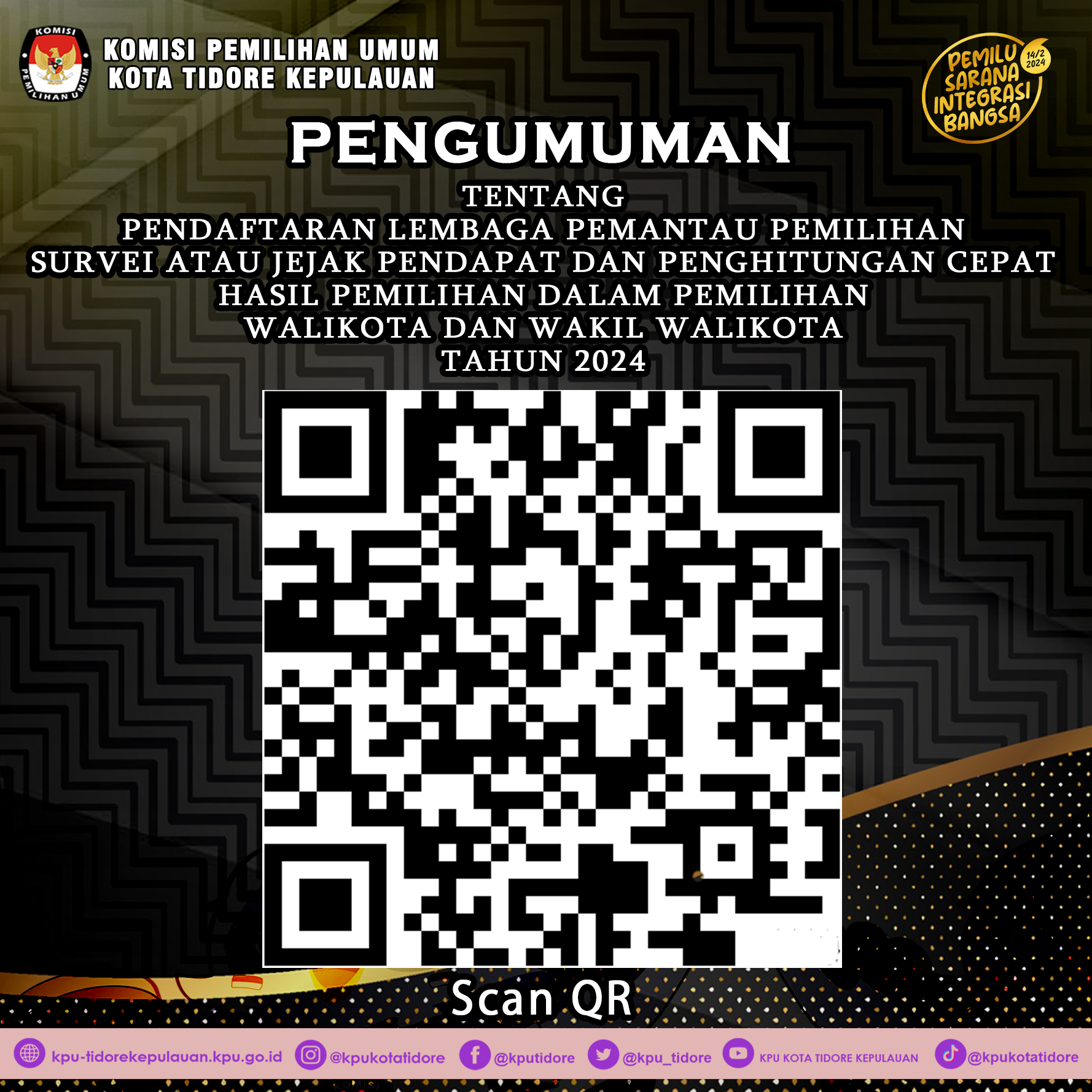 PENGUMUMAN PENDAFTARAN LEMBAGA PEMANTAU PEMILIHAN SURVEI ATAU JEJAK PENDAPAT DAN PENGHITUNGAN CEPAT HASIL PEMILIHAN DALAM PEMILIHAN WALIKOTA DAN WAKIL WALIKOTA TAHUN 2024