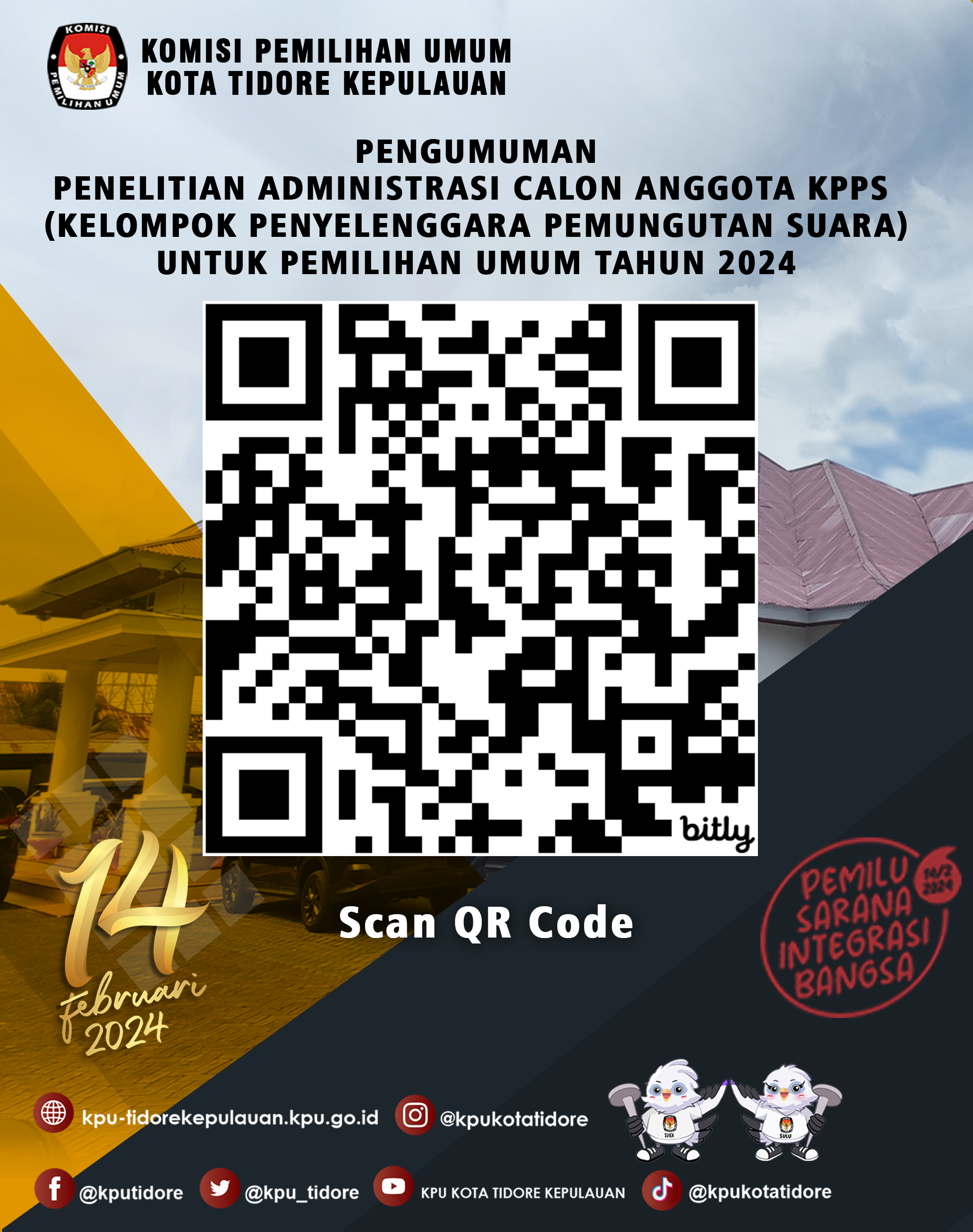 Dalam rangka pembentukan Kelompok Penyelenggara Pemungutan Suara (KPPS) untuk Pemilihan Umum Tahun 2024, Komisi Pemilihan Umum Kota Tidore Kepulauan mengumumkan nama-nama yang dinyatakan lulus dalam seleksi administrasi calon anggota Kelompok Penyelenggara Pemungutan Suara (KPPS) pada Pemilihan Umum Tahun 2024 sebagai berikut: