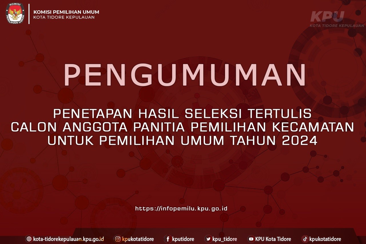 - KPU Kota Tidore Kepulauan menetapkan hasil seleksi tertulis calon anggota Panitia Pemilihan Kecamatan untuk Pemilu Tahun 2024 sebagaimana daftar terlampir (Lampiran I);