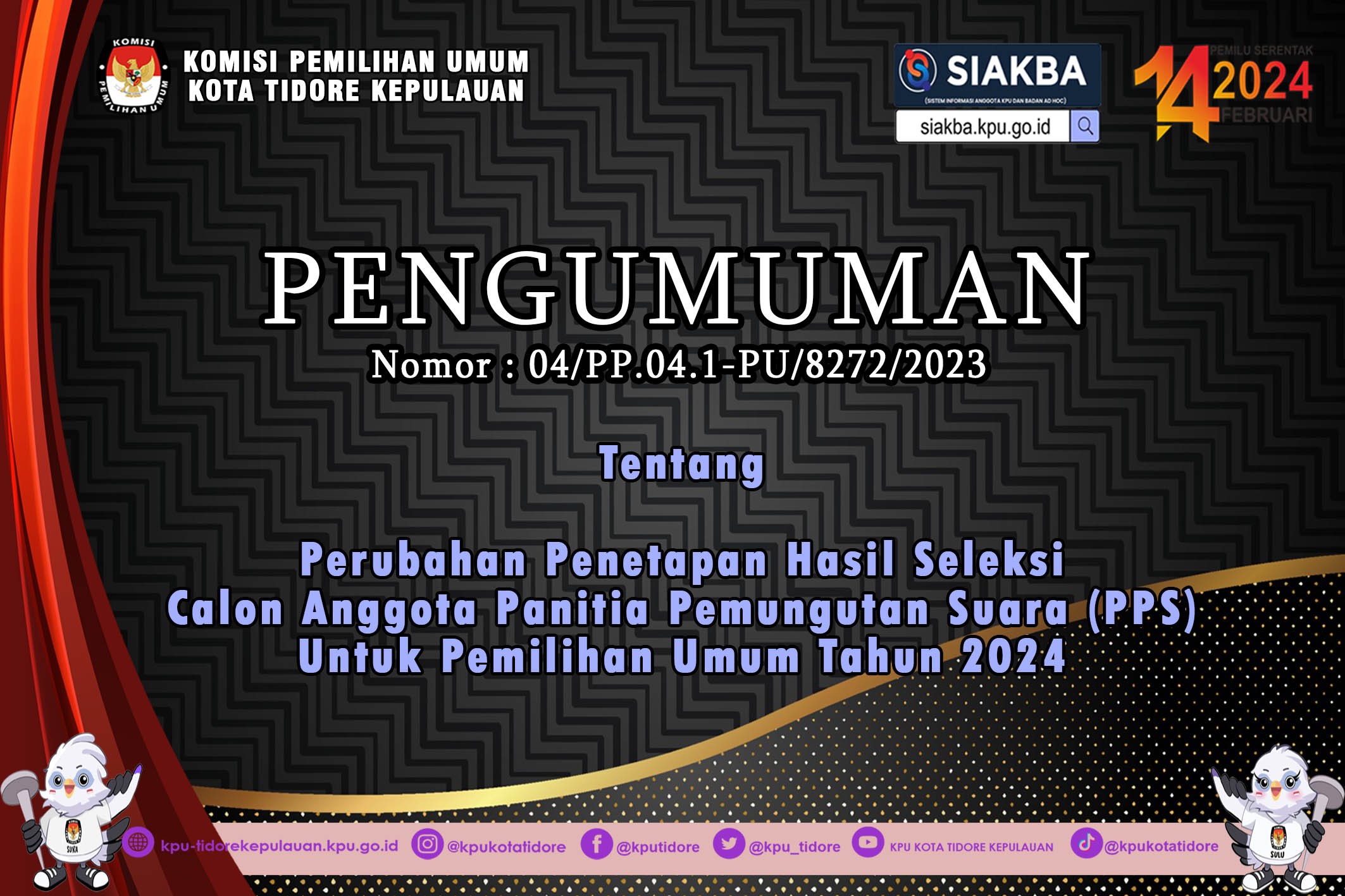 PENGUMUMAN PERUBAHAN PENETAPAN HASIL SELEKSI CALON ANGGOTA PANITIA PEMUNGUTAN SUARA (PPS) UNTUK PEMILIHAN UMUM TAHUN 2024