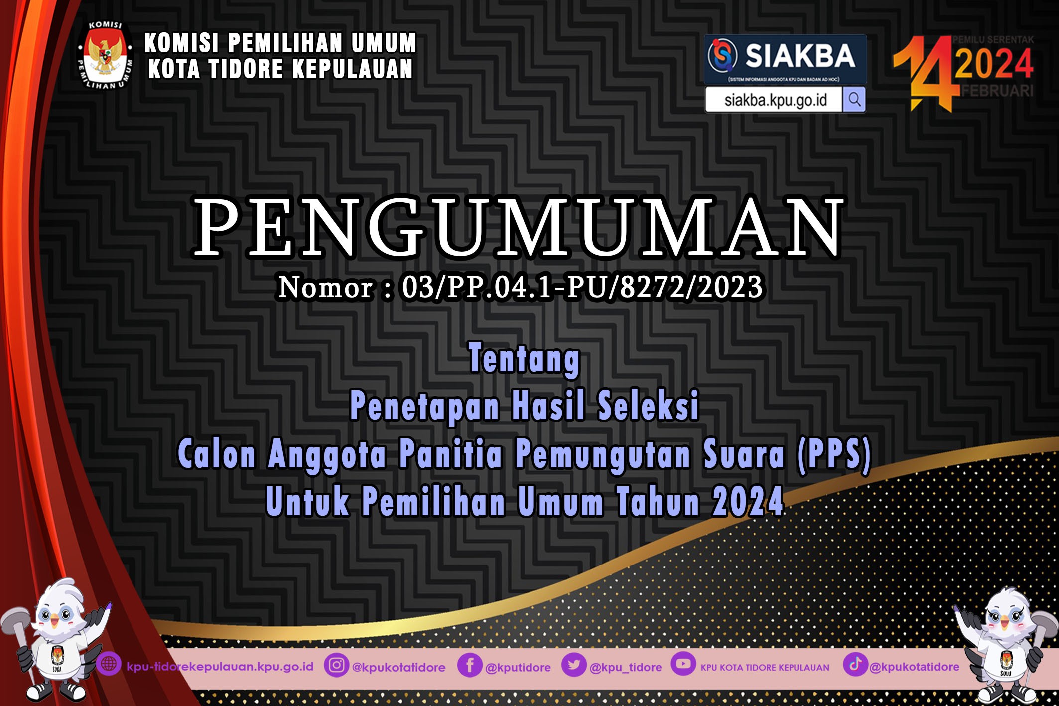 PENUMUMAN PENETAPAN HASIL SELEKSI CALON ANGGOTA PANITIA PEMUNGUTAN SUARA (PPS) UNTUK PEMILIHAN UMUM TAHUN 2024