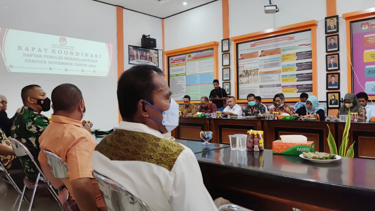 Komisi Pemilihan Umum Kota Tidore Kepulauan (KPU Tikep) melaksanakan Rapat Koordinasi Pemutakhiran Data Pemilih Berkelanjutan bulan November 2021 dengan sejumlah lembaga/instansi di Aula Kantor KPU Tikep, Kamis (2/12/2021). Hadir dalam rapat tersebut Bawaslu Kota Tidore Kepulauan, Dinas Kependudukan dan Catatan Sipil, TNI, Polri, Pemerintah tingkat kecamatan, organisasi kemasyarakatan serta instansi terkait lainnya.