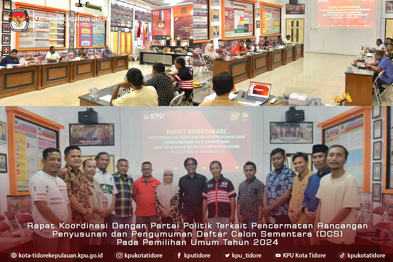 #Temanpemilih KPU Kota Tidore Kepulauan (Tikep) melaksanakan Rapat Koordinasi (Rakor) dengan Partai Politik Se-Kota Tikep terkait Pencermatan Rancangan Penyusunan dan Pengumuman Daftar Calon Sementara (DCS) Anggota DPRD Kota Tidore Kepulauan Pada Pemilihan Umum Tahun 2024, Sabtu (5/8/2023).