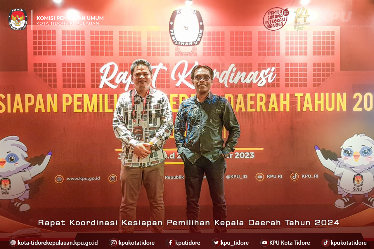 #TemanPemilih, Ketua KPU Kota Tidore Kepulauan, Abdullah Dahlan bersama Anggota, Amirudin Ais dan Sekretaris, Akmal Daud menghadiri Rapat Koordinasi (Rakor) Kesiapan Pemilihan Kepala Daerah Tahun 2024 Gelombang I yang dilaksanakan KPU RI di Jakarta, Jumat - Minggu (22-24/9/2023).