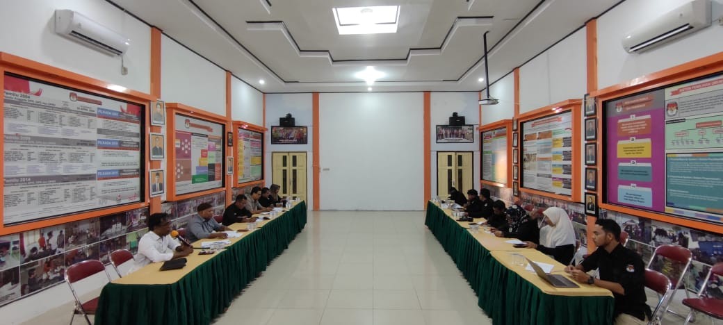 Rabu, 9 Maret 2022 pukul 10:00 WIT berlokasi di aula, KPU Kota Tidore Kepulauan melakukan kegiatan rapat rutin mingguan sekaligus dilanjutkan dengan agenda rapat pembahasan draf Rancangan Peraturan Komisi Pemilihan Umum sebanyak tiga draft yaitu; (1). PKPU Tentang Jadwal Retensi Arsip Substantif dan Fasilitatif Non Kepegawaian dan Non Keuangan Komisi Pemilihan Umum, (2). PKPU tentang Pelaksanan Anggaran Belanja Dalam Rangka Pelaksanaan Tahapan Pemilihan Umum Serentak Tahun 2024, (3). PKPU tentang Perlengkapan Pemungutan Suara dan Dukungan Perlengkapan Lainnya Dalam Pemilihan Umum. Tujuan pembahasan draf ini ialah untuk memberi masukan tentang draft PKPU yang nantinya akan disahkan oleh KPU RI, rapat diikuti oleh Ketua dan Anggota, Sekretris, Kasubbag dan Staf.