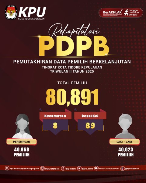 Rekapitulasi PDPB Pemutakhiran Data Pemilih Berkelanjutan Tingkat KPU Kota Tidore Kepulauan Triwulan II Tahun 2025