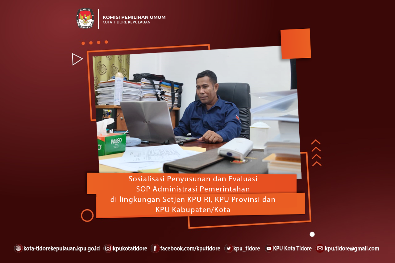 #TemanPemilih! Sekretaris KPU Kota Tidore Kepulauan menghadiri undangan rapat melalui zoom meeting terkait Sosialisasi Penyusunan dan Evaluasi SOP Administrasi Pemerintahan di lingkungan Sekretariat Jenderal KPU, KPU Provinsi dan KPU Kabupaten/Kota. Selasa (7/6/2022), mulai pukul 12.00 WIT s.d selesai. Kegiatan yang dilaksanakan oleh Biro Perencanaan dan Organisasi KPU RI ini dalam rangka pelaksanaan reformasi birokrasi dan penguatan ketatalaksanaan di KPU. Hadir sebagai pemateri pada kegiatan tersebut dari Kementerian PANRB.