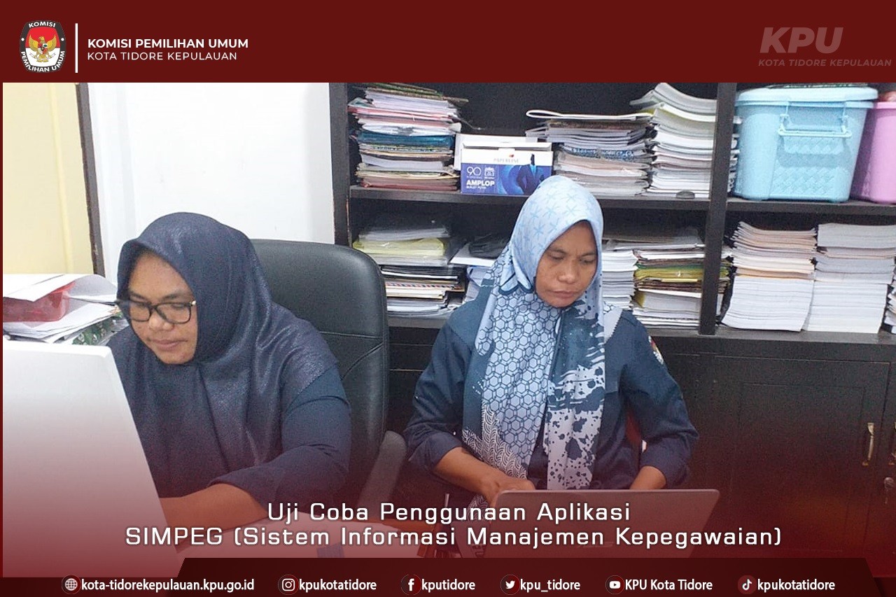 #TemanPemilih, Selasa (12/7/2022) KPU Kota Tidore Kepulauan mengikuti kegiatan uji coba penggunaan aplikasi SIMPEG (Sistem Informasi Manajemen Kepegawaian) di lingkungan Sekretariat KPU Provinsi dan Sekretariat KPU KIP Kabupaten/Kota yang diselenggarakan oleh KPU RI secara daring.